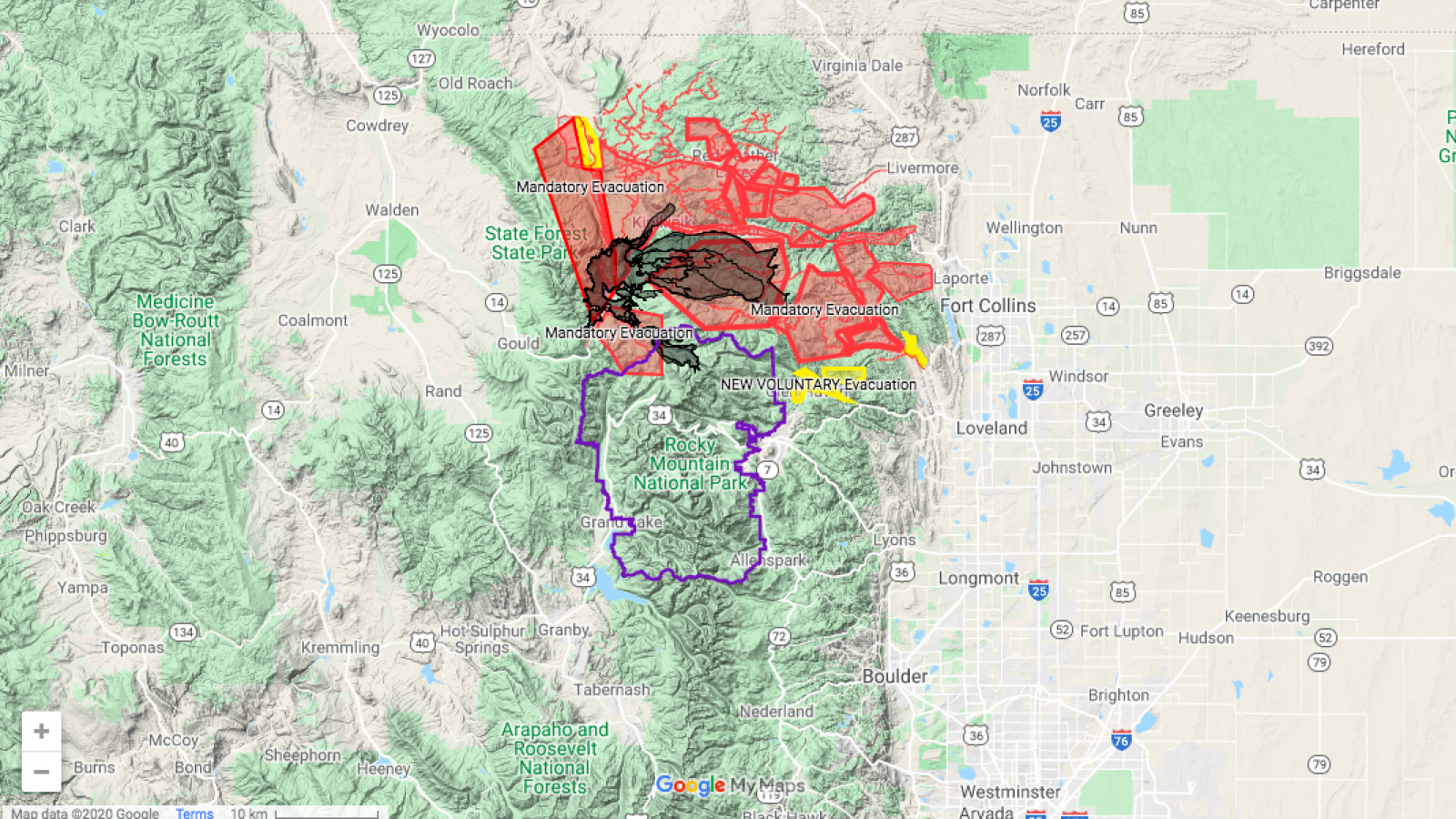 County/Evacuations: Evacuation levels continue to be implemented across Grand County and around the East Troublesome Fire area. For Grand County, updates are provided by Emergency Management and can be found at gcemergency.com. Visit the Grand County Sheriff Facebook page for more information on the home winter mitigation process and changes to the evacuation levels. The Jackson County Sheriff’s Department has evacuated public from within the area closure to the north of the fire. Please visit the Larimer County site for evacuations in the Thompson Zone.