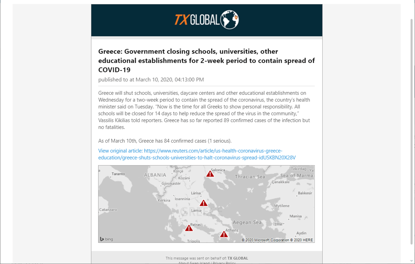 “In a rapidly evolving global crisis such as this, having trusted situational awareness and harnessing important information from a vast number of resources is critical,” said Pete O’Dell, CEO of Swan Island Networks. “TX Global helps even small organizations stay abreast of breaking events so they can make informed, proactive decisions to manage the key elements of their response.”
