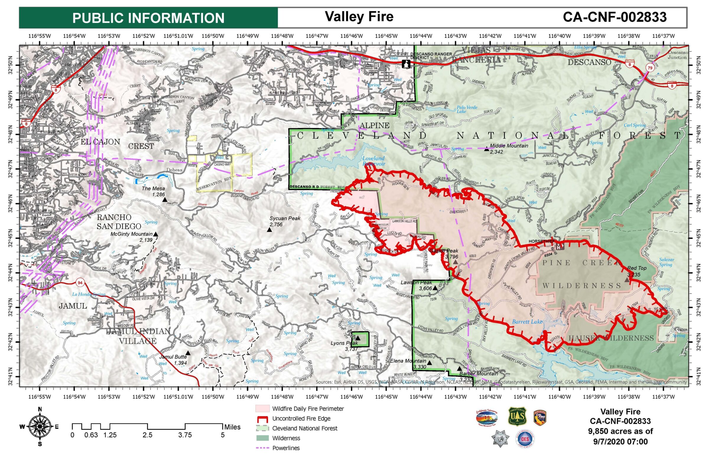- Valley Fire, Up to Almost 10,000 acres, Burning at ‘Dangerous Rate’ in Japatul Valley (Times of San Diego)