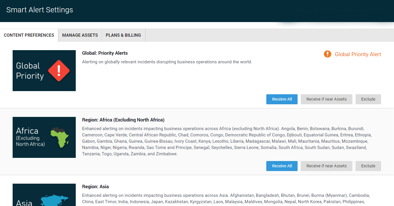 Customize your alert settings by region.