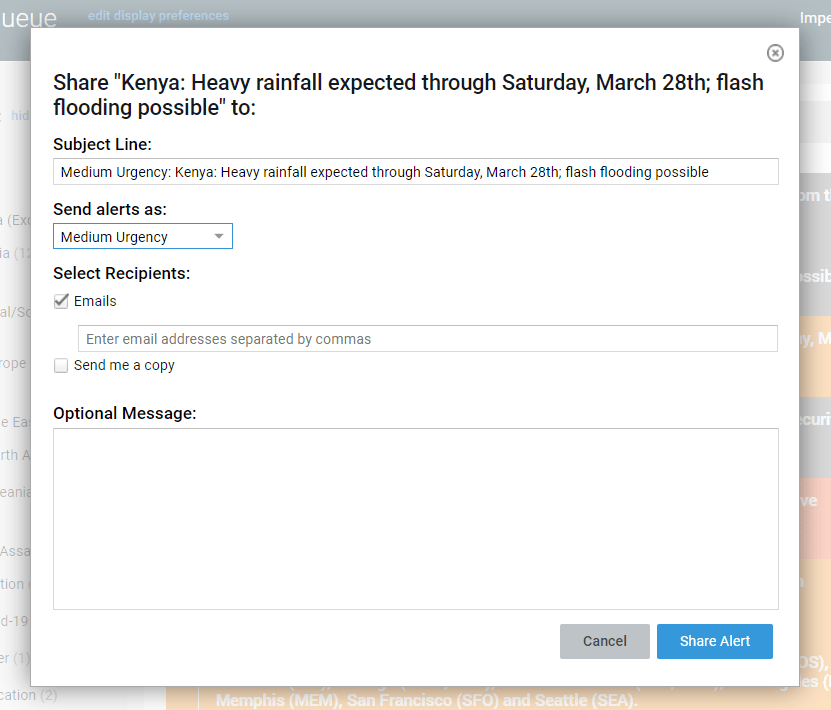 Alerts can be shared to other emails from the Smart Alert Queue.