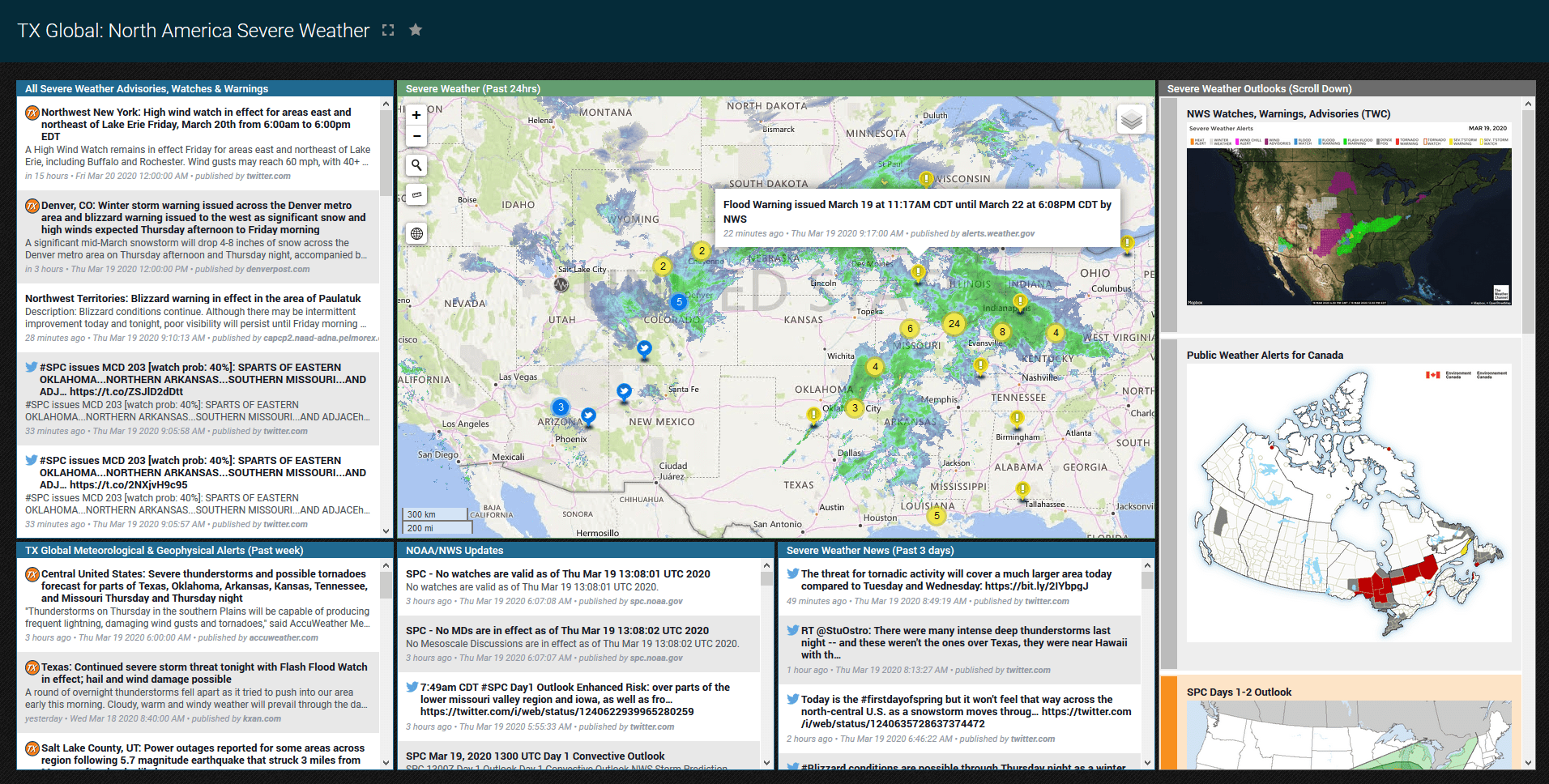 Key event Dashboards monitor specific incidents and issues of concern such as COVID-19/Coronavirus, hurricanes, wildfires, etc.